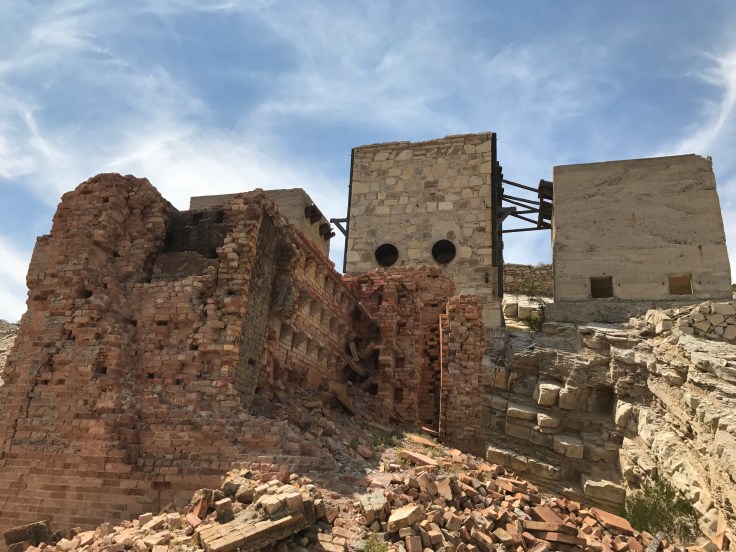 That creepy abandoned feeling surrounded me as we approached the crumbling brick buildings. Cactuses starting to bloom lined the way and added color to the earthy landscape. We went up to the top of the ridge and surveyed the desert. We decided we would head back to the main park road once we got back down.