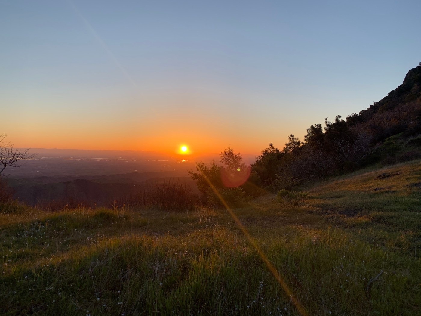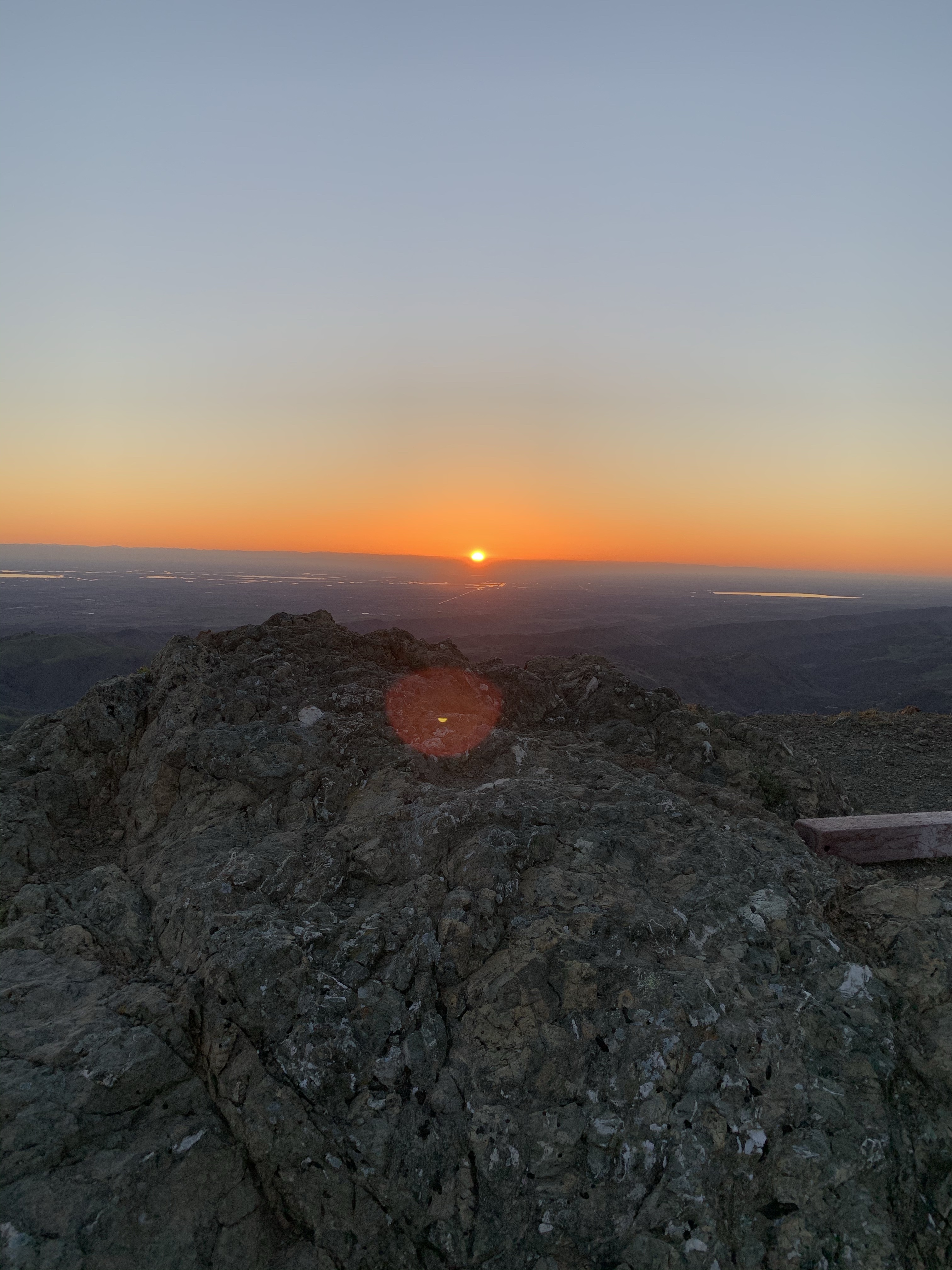 I made my way up some steep sections of trail while the world lit up around me. Eventually I had crested the hill to the summit of Mount Olympia. I had beaten the sunrise. I stood and marveled at the orange landscape below in the central valley of California. I had a few minutes so I sat and took it all in. I was alone on the summit of Mount Olympia and it was so quiet and peaceful. I sent a short video to a few friends to share the beauty and looked out at the Sierra. Minutes later the sun came up. All was right in the world.
