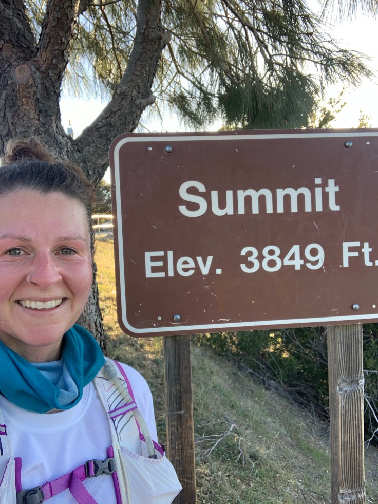 My alarm jarred me awake at 5. I wasn’t sure if I had slept at all, but in my zombie-like state I put everything on and together. I did not have to think because it was all ready for me. “You can do this Corinne,” a common pep-talk I give myself. This went through my head several times while getting ready until I left out the front door with my headlamp on. It certainly was not as cold as last time and the jacket I put on was likely a mistake (as always). I ran across the greenbelt as before, making my way to the trailhead at Regency Gate. My jacket didn’t even make it all the way there before it was removed and thrown in my vest in a Zip-lock bag. This was to protect my poor jacket from the insane amount of sweat that was going to happen very soon. I took my first step on the trail and immediately slipped on some loose gravel on a downhill that almost sent me tumbling. “Stay sharp,” I thought as the street lights fell behind me and darkness surrounded my headlamp bubble of light.