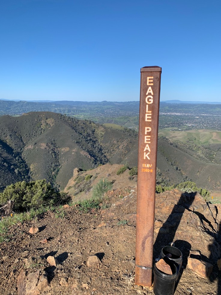 A little more careful now still, the trail brought me down the ridge. Soon there would be one last climb to Eagle Peak and I was ready for it, but also ready to be done. The sun was now wide awake over the park and I was fully exposed. As I made the climb up to Eagle Peak I looked back at Mount Olympia, North Peak, and Mount Diablo amazed at what I had already accomplished.