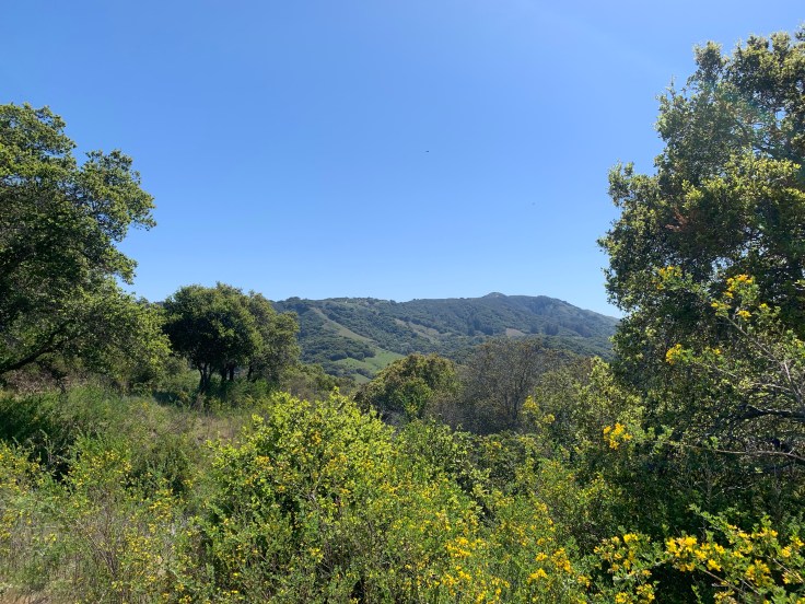 And then it was climbing steeply up an overgrown road. Plants were growing every which way over the two lines of the road. I thought about ticks and poison oak, hoping I would avoid those. Luckily I didn’t see much for poison oak and it is really hard to see ticks so I just had to press on and check later. I knew people had been through here before me, so maybe I shouldn’t even worry about the ticks.