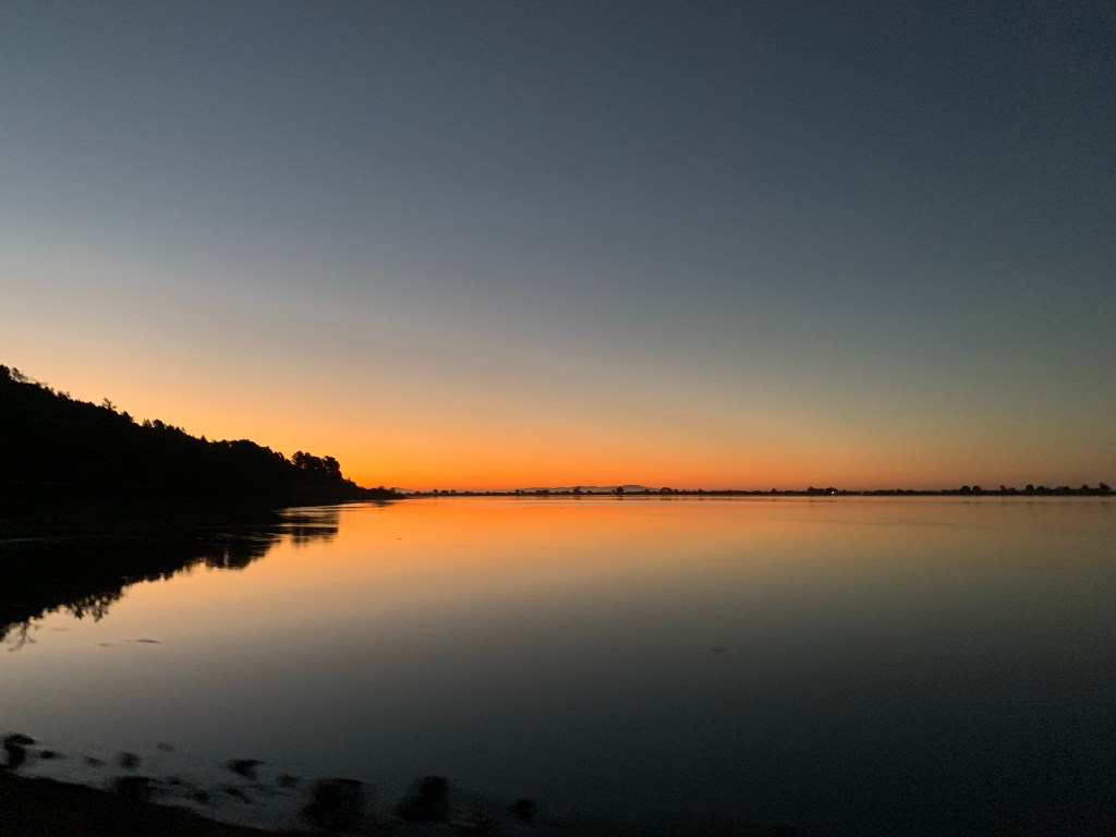 Eventually, I fell into a light sleep, getting up several times to go to the bathroom. When my alarm went off I wondered how much I had slept and if there was any quality to it. I was glad to have slept well the night before. We quickly packed things up in the darkness and closed the camper before heading to the start line. The sun was coming up in dramatic fashion as we drove along the coast.