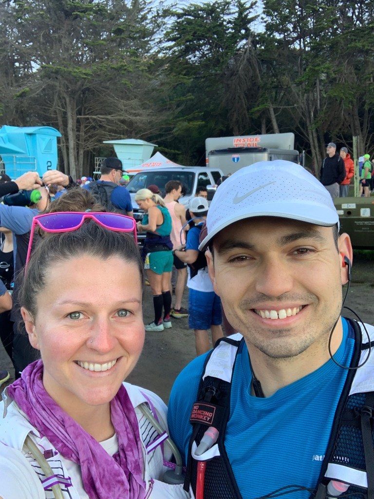 It seemed like we had plenty of time, but not enough. We scrambled to use the bathroom, get our bibs, eat some oatmeal, and change into our race day clothes. I chose one of my new favorite shirts, compression shorts under my waistband pocket shorts, toe socks, and my purple Altra Lone Peaks. I stuffed my vest with enough food to survive Armageddon and filled my water bottles. One with water and the other with an electrolyte mix and put Goodrs on the top of my head.