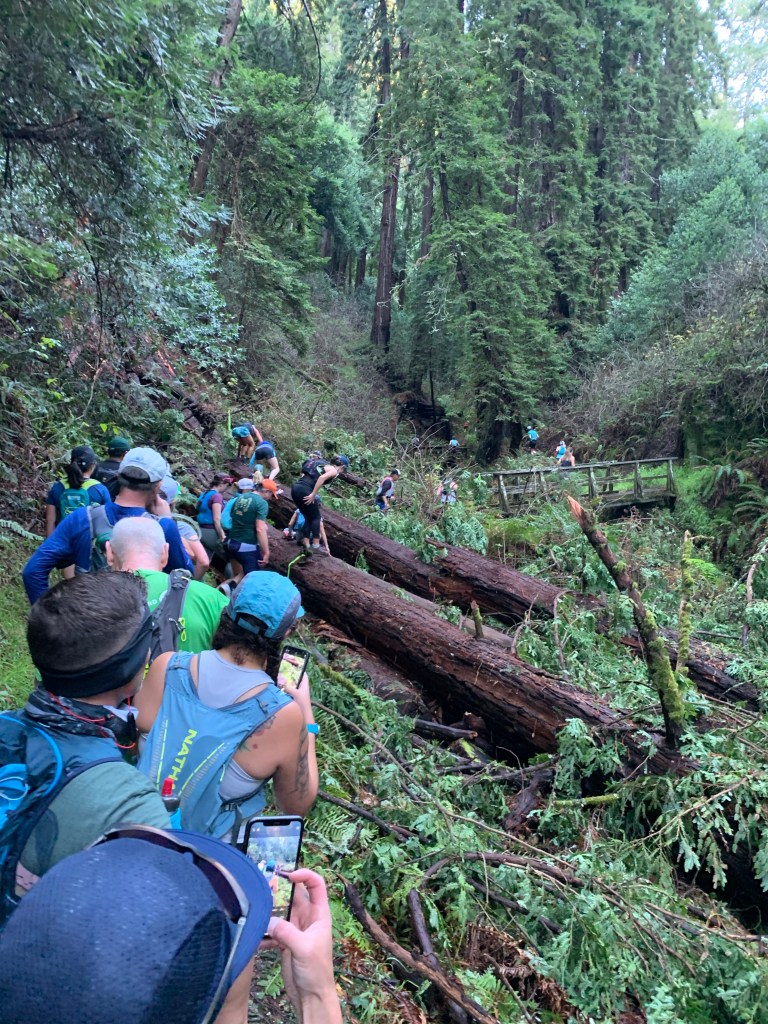 We reached Muir Woods and crossed back over the creek and then the trail went up. I couldn’t run and I felt my lack of nutrition starting to backfire on me. My body felt heavy like lead. I felt like I was dragging and the nausea came back full force. I climbed the hill with everything I had at the moment, but it still felt like a pitiful effort.